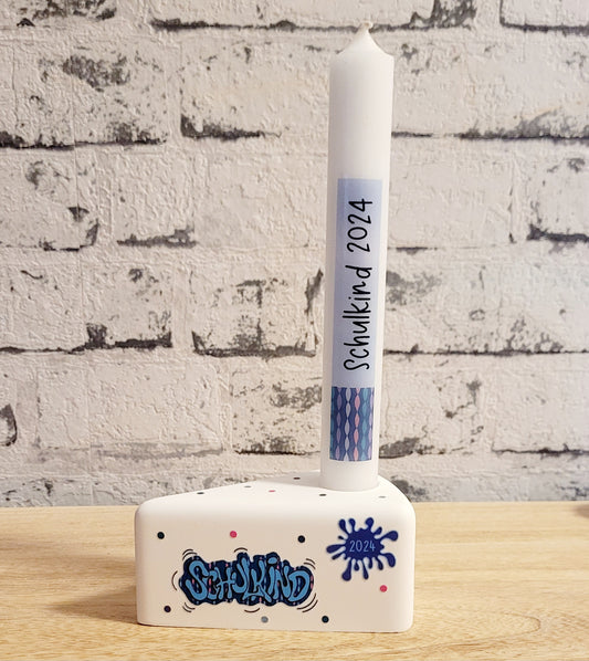 "Karneval Girlanden" Schulkind-Karte mit Kerze, Einschieber
