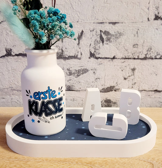 "Im Netz des Kopernikus" Deko Tablett mit ABC und Vase