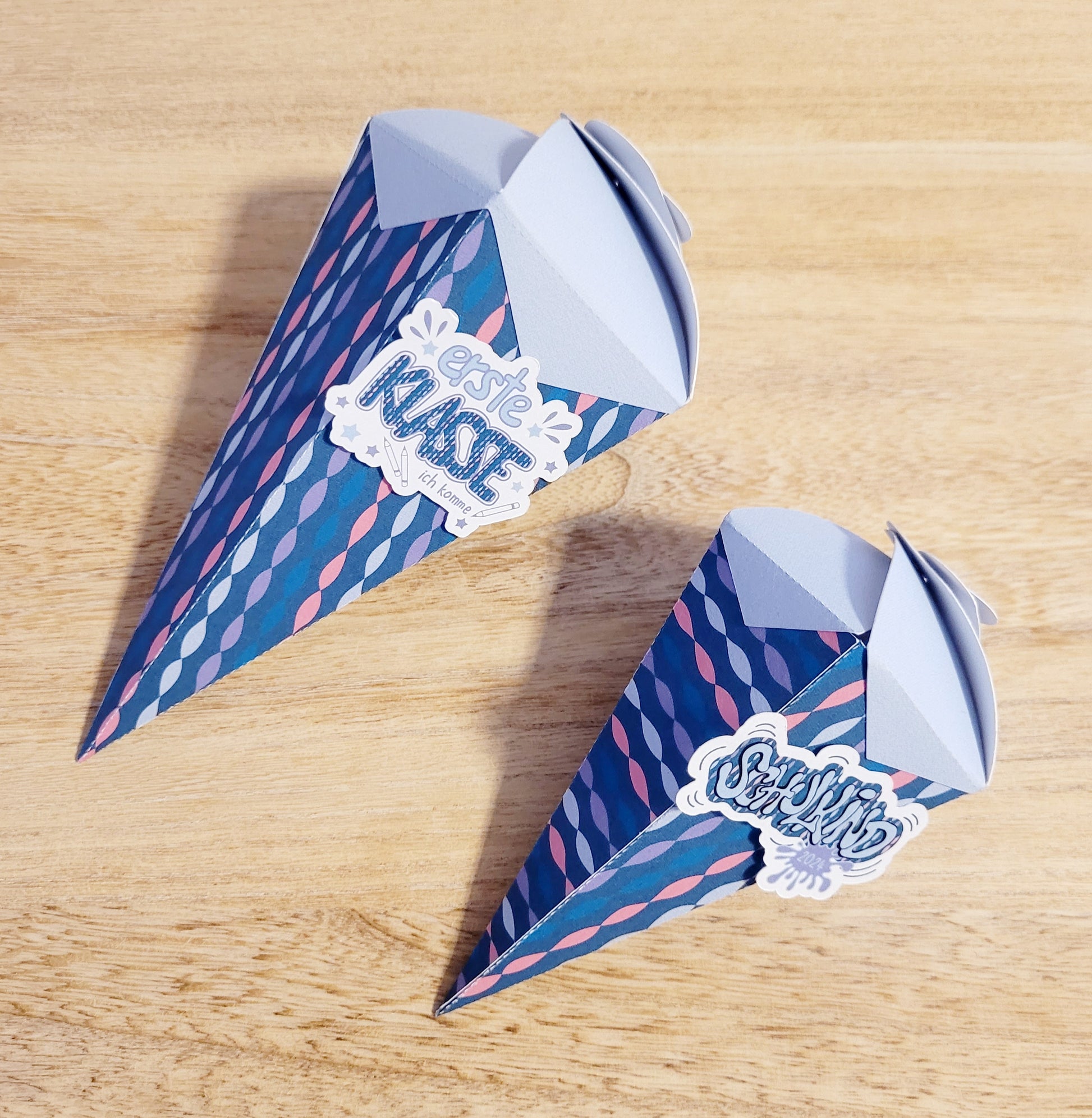 Die Schultüten gibt es in zwei verschiedenen Größen und lassen sich mit ein bisschen süßem oder leichten Kleinigkeiten befüllen.
